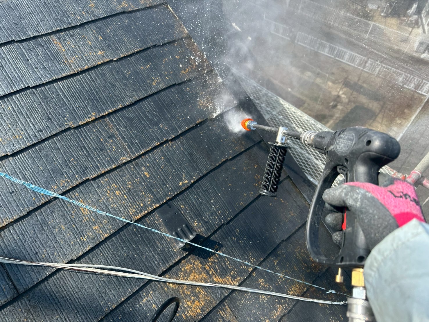 郡山市富久山町にて屋根塗装工事~洗浄作業~(スレート屋根)